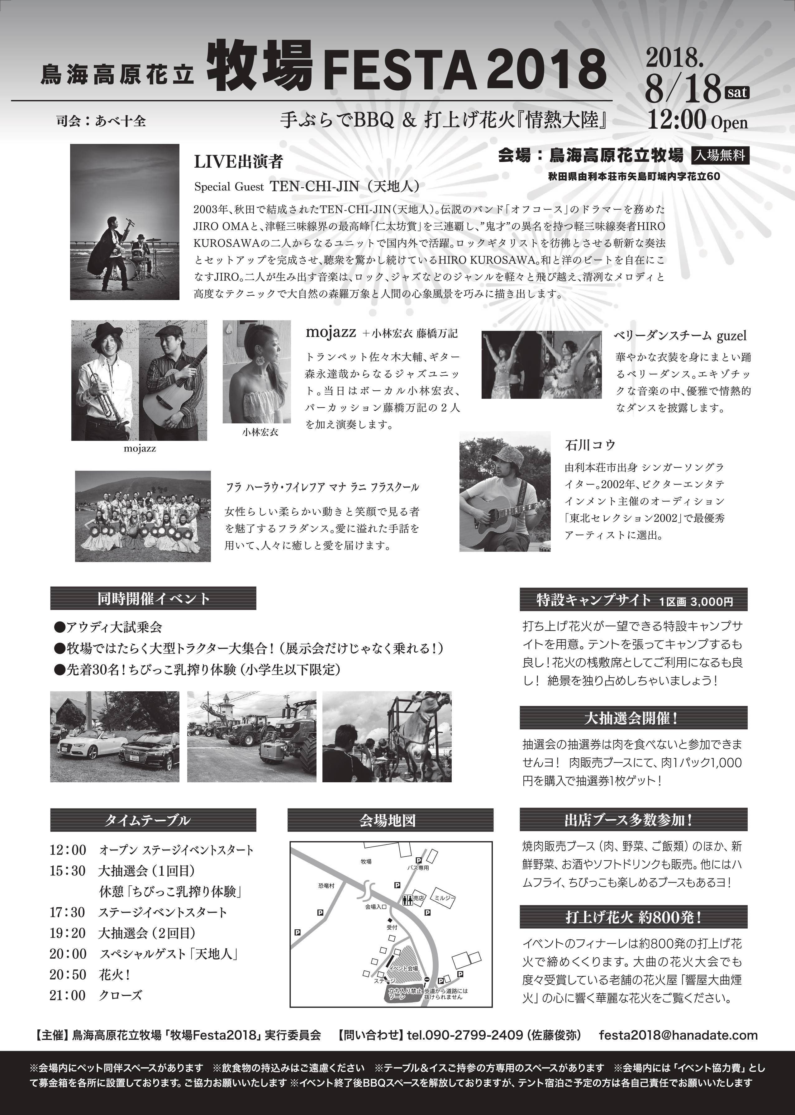 ●今年も花立牧場Festa2018 音楽イベント開催します!!8月18日(土)詳しい内容は 随時フェイスブックにて掲載させていただきます。
